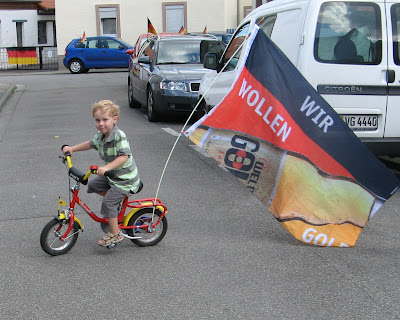 The excitement has been building in the last few weeks with regard to Germany's participation in the European Championship. Neither Heike nor I are particularly interested in football, certainly not enough to fly a black, red & gold flag from our cars, as most Germans seem to be doing. Apart from anything else, the extra drag caused by those flags no doubt translates to another few million tons of CO2 in the atmosphere.
